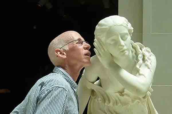 This classical woman appears to be all ears as a museum visitor whispers to herCredit: Splitpics.uk